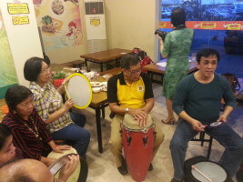 This we experienced las November 10 and again last December 15 at our favorite eatery, Chickboy at Harrison Plaza. We enjoyed togetherness with what has emerged as a kind of core group for the drumming session facilitated by Francis Gspar. Friends of kindred spirit but certainly of diverse personalities celebrated the transformational joy of community. Personalities like the happy sisters Oding and Beng; the couple from China Banking Marivic and Rois; Val from SJDDios; Emil and myself and our adopted son Marc Co. Not to be forgotten is Bernice,the wife of Francis.